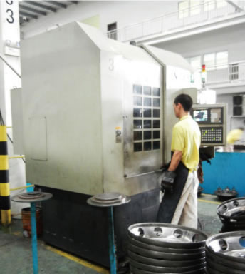 lfck車輪輪輻數控自動車床 ◎本機采用了伺服電機、數控系統,有自動液壓鎖緊、放松及自動進給,具有產品生產效率高,加工尺寸精確的特點。 ◎規格:16吋、20吋、22.5吋、24吋